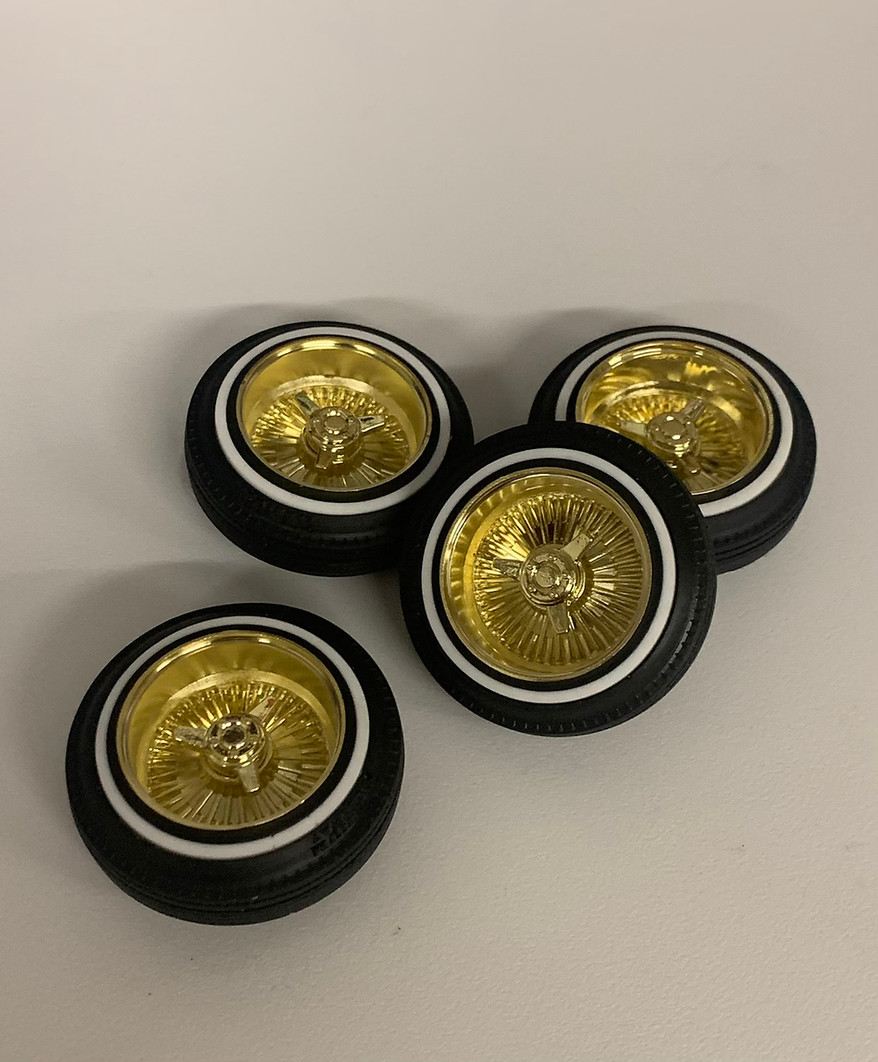 1:10 Gold Real Steel Wire Wheels with the 3 Prong Knock Offs on 520’s